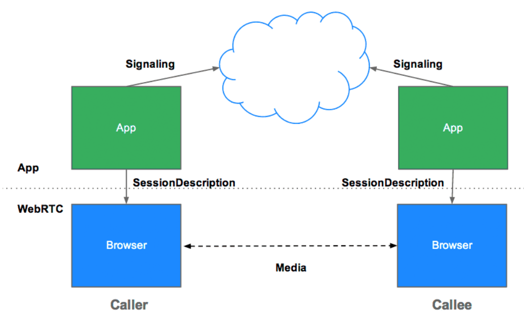 Caller가 Signalig 서버를 통해 자신의 SessionDescription을 보내면 Calle도 Signaling 서버를 통해 자신의 SessionDescription을 보냄