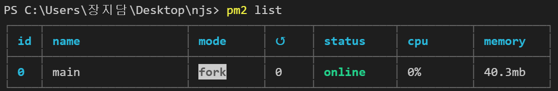 pm2 monit 명령어를 입력하면 이렇게 pm2에 의해 실행되는 프로그램 목록을 보여준다. 만약 강제로 main을 종료하면 pm2가 바로 다시 실행시킨다