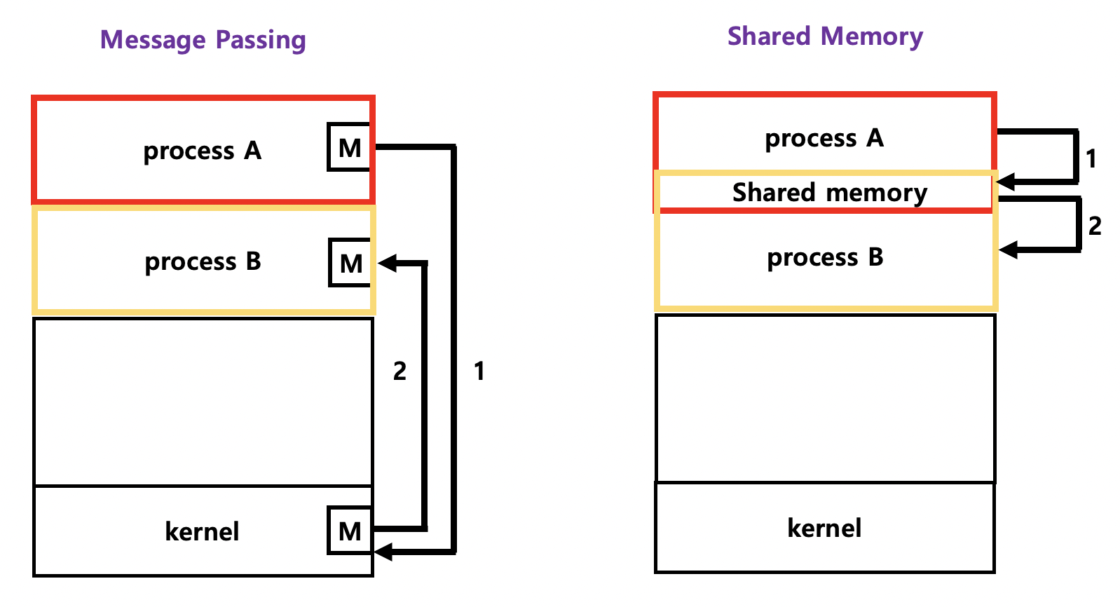프로세스간 협력 메커니즘에는 메세지를 전달하는 방법과 주소 공간을 공유하는 방법, 이렇게 2가지가 있다.