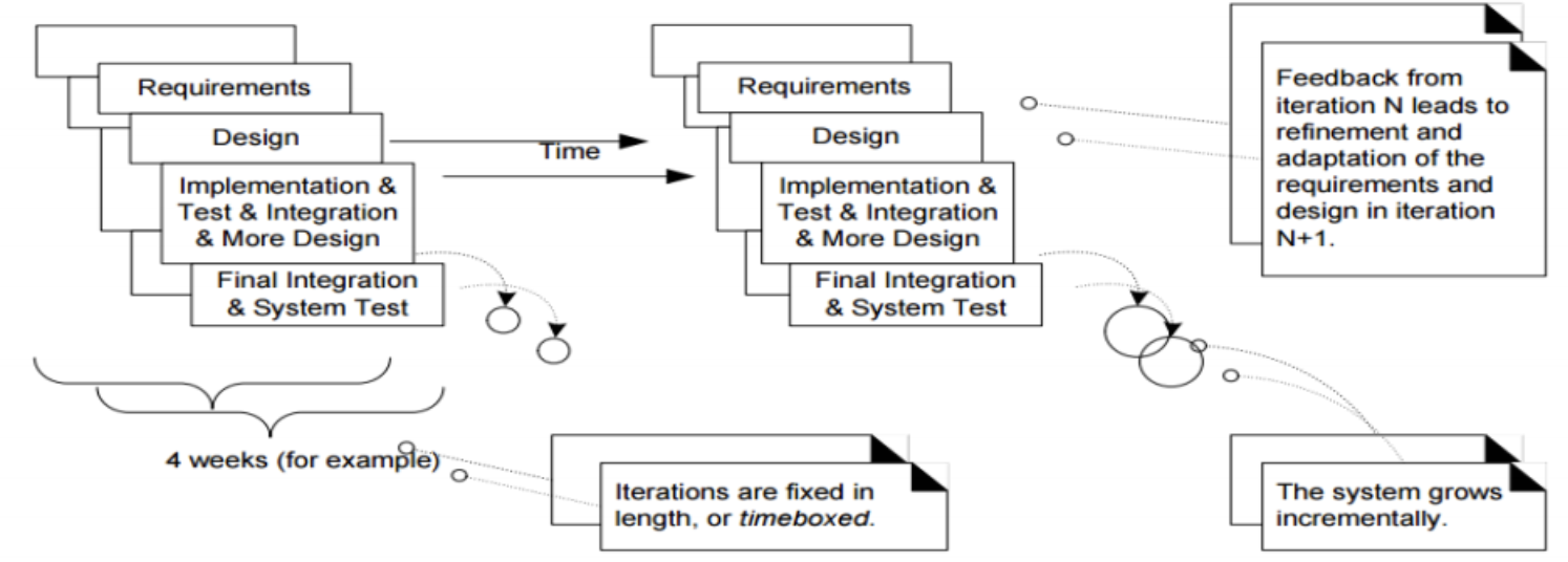 Development는 짧은 series, 고정된 길이, iterations라고 불리는 미니 프로젝트를 의미하며 각 iteration은 자체의 요구사항 분석과 디자인, 구현, Test활동을 포함한다.