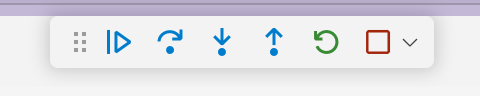 Continue / Step Over / Step Into / Step Out / Restart / Stop