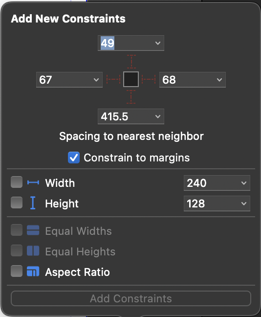 AutoLayout을 설정하기 위해 Add New Constrains에 들어가보면