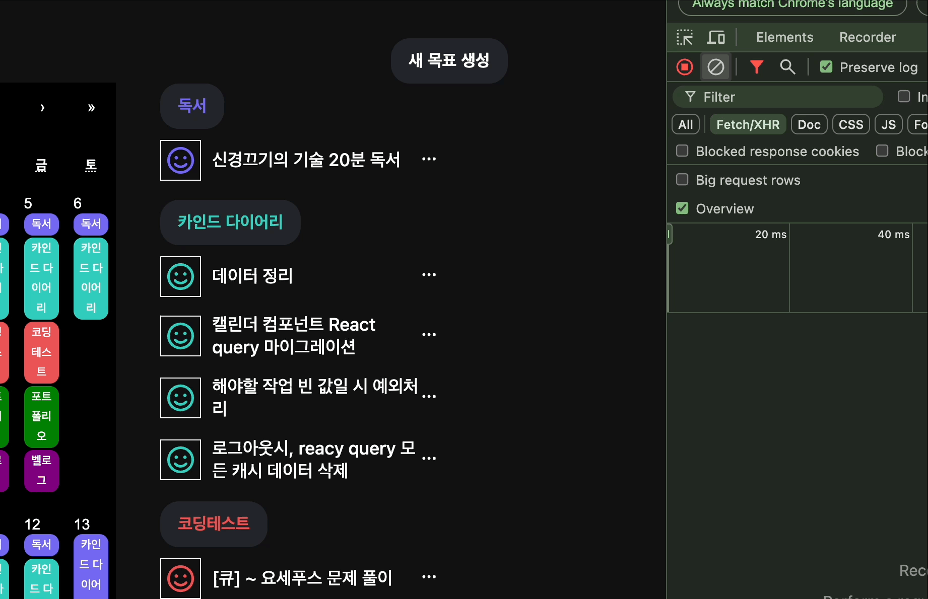 - 현재 진행 중인 프로젝트에서, API 호출을 통해 받아온 목표리스트 데이터들을 캘린더 내에 렌더링하는 컴포넌트가 존재한다.