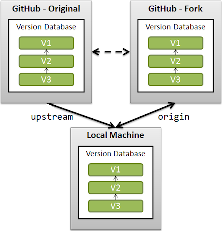 origin: is your fork: your own repo on GitHub, clone of the original repo of GitHubupstream: generally refers to the original repo that you have forkedgithub official 문서에도 아래와 같이 정리되어있습니다.