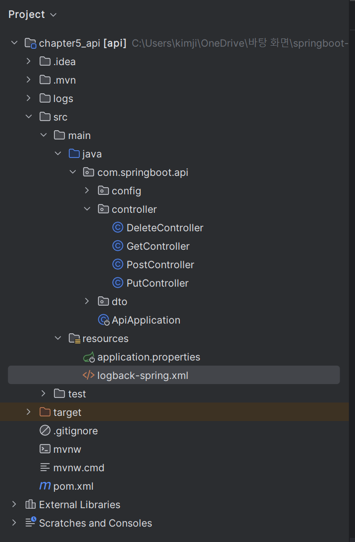 logback.xml이라는 이름으로 참조하지만 스프링 부트에서는logback-spring.xml파일을 참조한다.