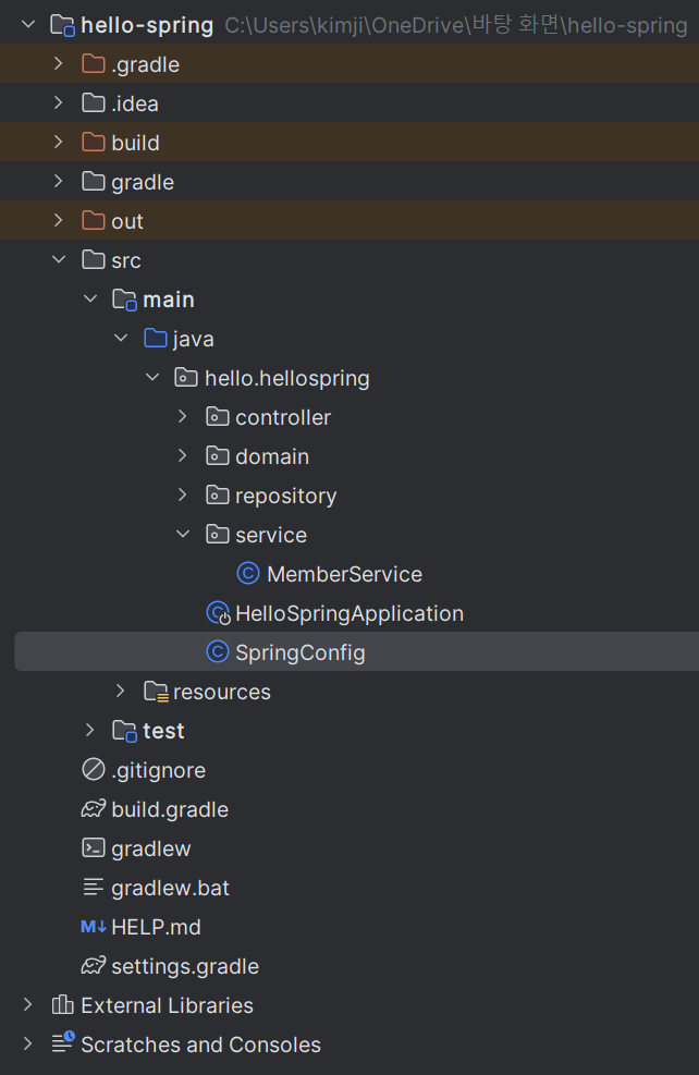 SpringConfig.java라는 파일을 만든다.- 해당 파일에 등록하고자하는 패키지를 입력한다.