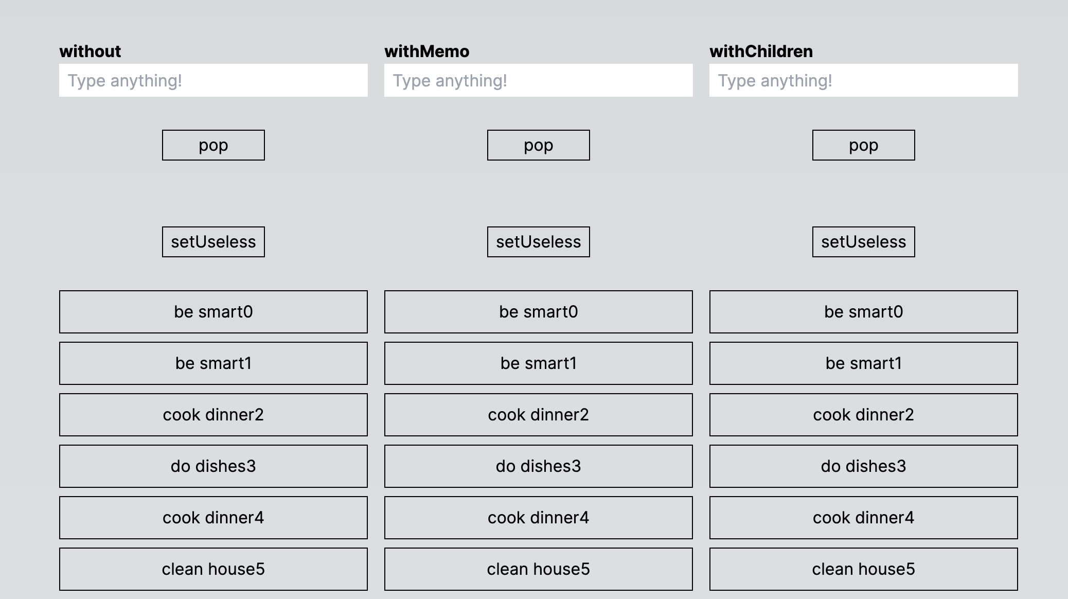 const Item = type === 'without' ? TodoItemWithoutChildren : TodoItemWithMemo;