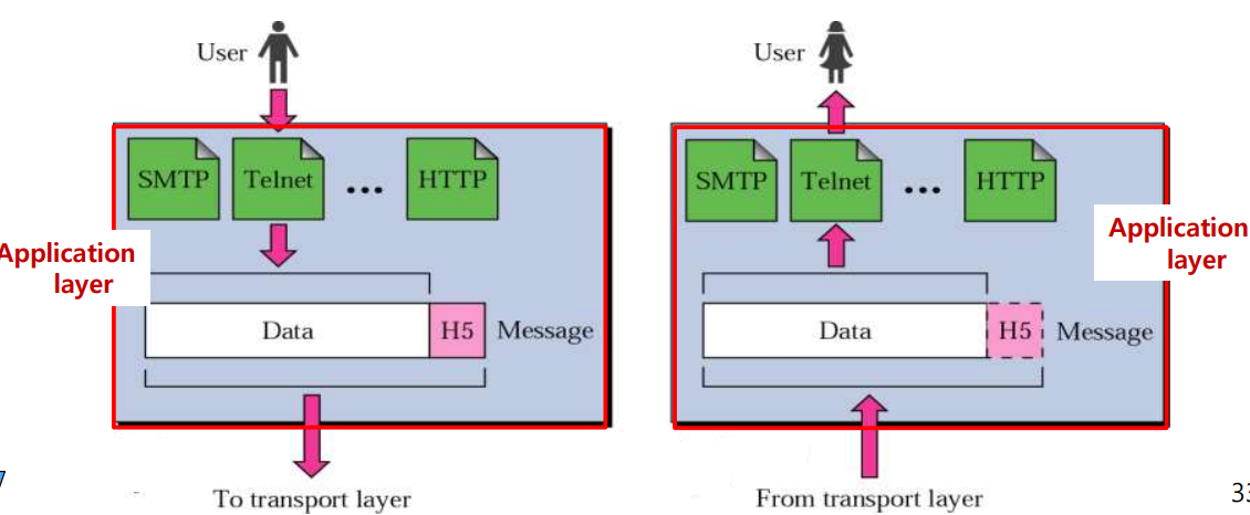 사용자에게 서비스를 제공하는 책임: 종단 대 종단에 대해 응용 프로세스들의 정보 교환이 되는 계층
