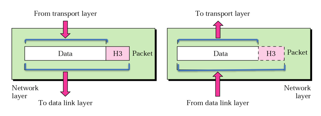 - 양방향 통신이라면, 각 계층은 각 방향으로 한 가지씩, 상반되는 두 가지 기능을 수행해야함.