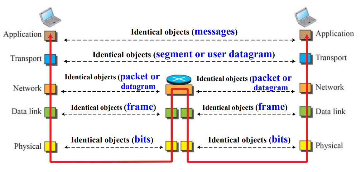 계층-대-계층 통신을 갖는다는 의미로, 한 장치의 x번째 계층은 다른 장치의 x번째 계층과 통신한다.