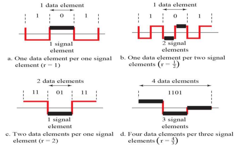 - 신호 요소: 통신에 사용되는 디지털 신호의 기본 단위