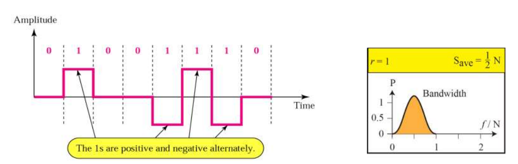 교대로 나타나는 반전되는 1을 의미함. 0 전압은 0을 나타내고, 1은 교대되는 양과 음전압에 의해 표현된다.
