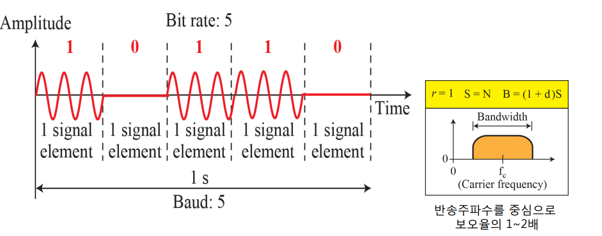 ASK에서 대역폭은 신호율보다 같거나 크다. (신호율에 비례함.)