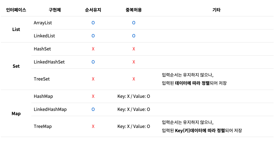 - 입력 순서를 보장하며, 데이터의 중복을 허용하지 않음