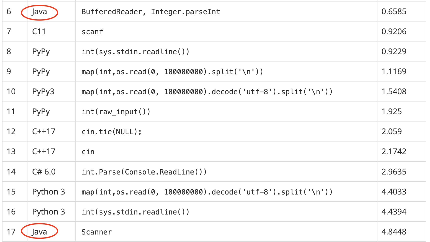 Scanner는 1KB 크기의 버퍼를 갖기 때문에 입력이 바로 전달되는 반면 BufferedReader는 8KB 크기의 버퍼를 가져 buffer에 입력들을 저장하였다 한 번에 전송하기 때문에 속도가 더 빠르다.