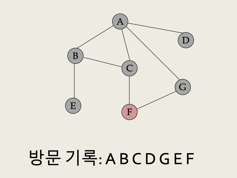 방문 방법은 가장 오래된 주변 정점을 먼저 방문한다.