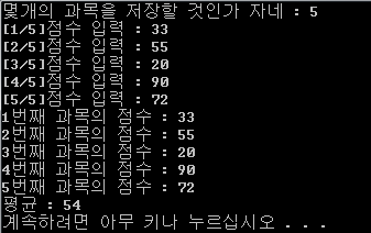printf("몇 개의 과목을 저장할 것인가 자네 : ");