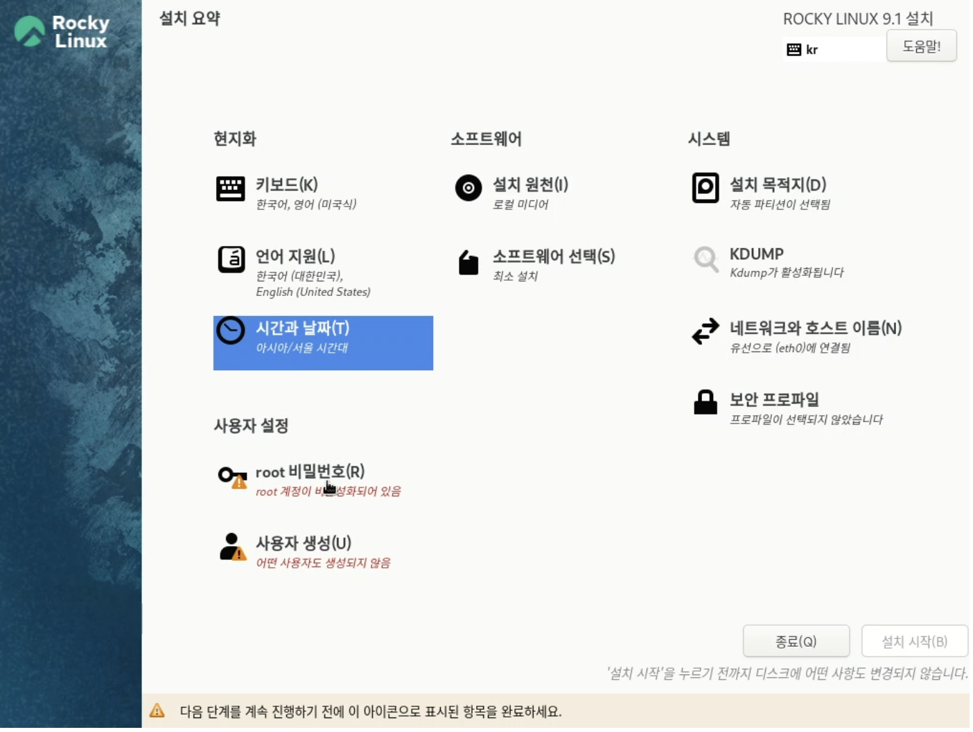 가상 하드 디스크 연결: rocky iso (이미지 파일)