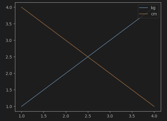 plt.plot([1,2,3,4],[4,3,2,1],label = 'cm')