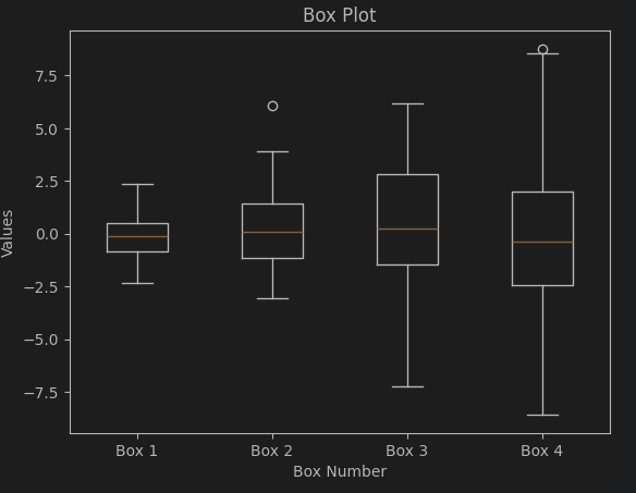 data_boxplot = [np.random.normal(0, std, 100) for std in range(1, 5)]