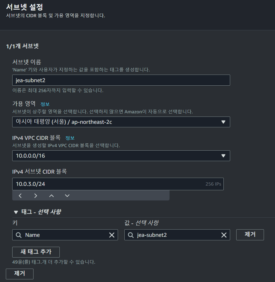 IPc4 CIDR 블록을 10.0.3,0.24로 하나 생성해주겠다.