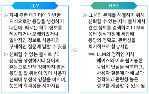 RAG는 신뢰할 수 있는 정보 소스를 검색하여 사용자 질문에 정확하고 관련성 높은 답변을 제공함으로써, 정적인 지식 베이스의 한계를 극복하고, 시간에 민감한 질문에도 적절한 응답을 가능하게 함