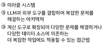 복잡한 문제 해결을 위해 대규모 언어 모델(LLM)과 외부 도구를 통합하는 아키텍처