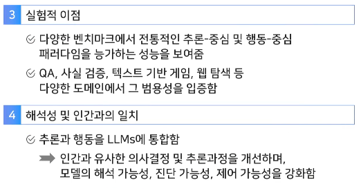 이 방식은 추론과 행동 생성을 하나의 프레임워크 내에서 결합함으로써, 모델이 일반적인 작업 문제를 더 효율적으로 해결할 수 있게 하고, 다양한 도메인에서 우수한 성능을 입증하며, 모델의 해석 가능성과 제어 가능성을 강화함
