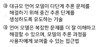 대규모 언어 모델이 복잡한 다단계 추론 문제를 해결하기 위해 중간 추론 단계를 생성하도록 유도하는 기술