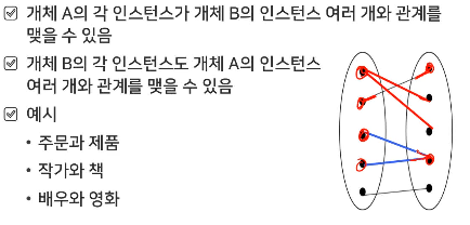 예) 사용자가 여러 권한(관리자, 편집자 등)을 동시에 가질 수 있음
