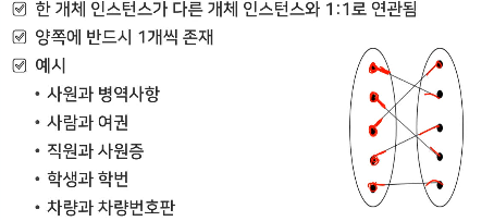 예) 사원이 정규직, 계약직, 파트타임 중 하나의 고용형태만 가질 수 있음