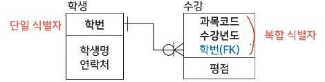 주 식별자가(한 가지 속성으로만 구성된 식별자.
