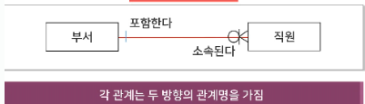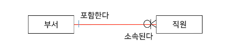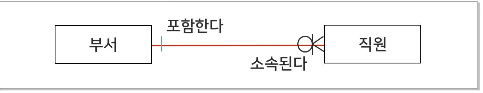 예) 사원이 속한 부서와 부서에 속한 사원 간의 관계