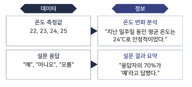 정보 : 데이터를 분석하고 가공하여 의미를 부여한 것