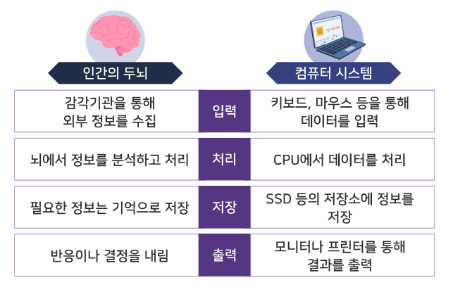 주요단계 : 입력 -> 처리 및 저장 -> 출력
