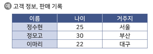정형 데이터 : 표처럼 행과열로 규칙적으로 정리된 데이터
