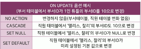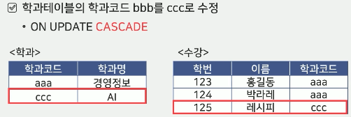 참조되는 튜플의 값이 변경될 때 관련 튜플의 외래 키 값도 함께 변경함