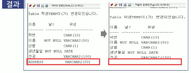 ALTER TABLE 학생TEMP DROP COLUMN ADDRESS;