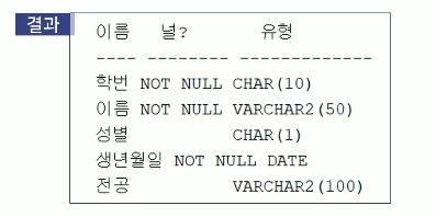 -- ALTER TABLE 테이블명 MODIFY (속성명 NULL);