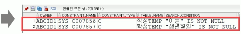 ALTER TABLE 학생TEMP MODIFY(이름 NULL);