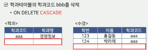 참조되는 튜플이 삭제될 때 관련 튜플도 함께 삭제함