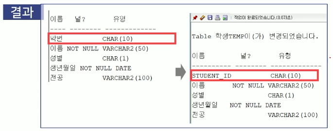ALTER TABLE 학생TEMP RENAME COLUMN 학번 TO STUDENT_ID;