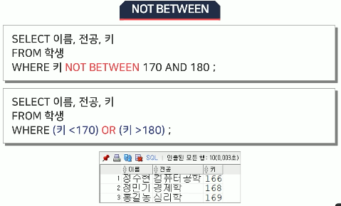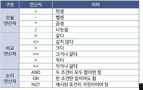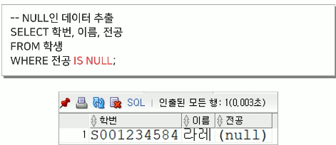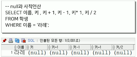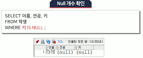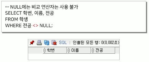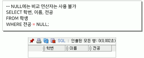 ☑ 하나라도 NULL이면 결과는 TRUE나 NULL(다른 값에 따라 다름)