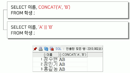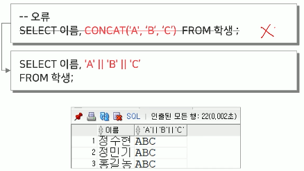 CONCAT은 두 개의 문자열만 연결할 수 있음.