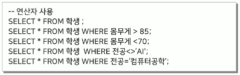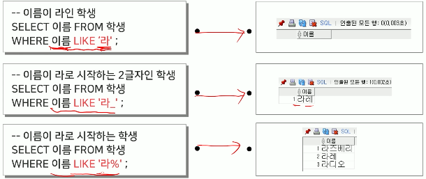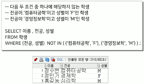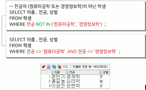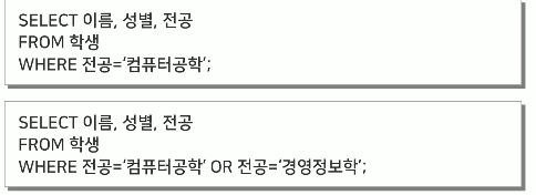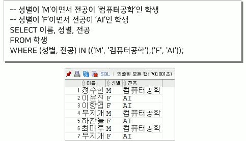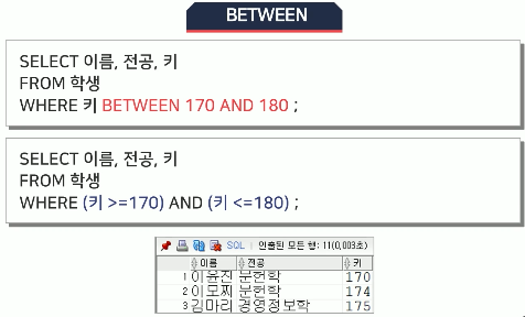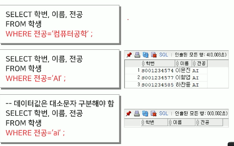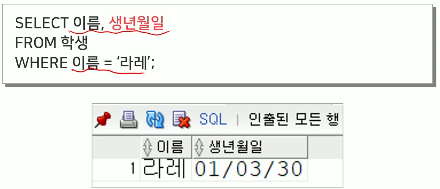 테이블에서 조건에 만족하는 칼럼값들을 조회