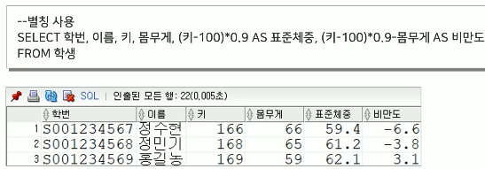 별칭이 공백, 특수문자 등을 포함하는 경우 큰 따옴표 사용