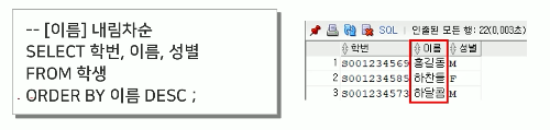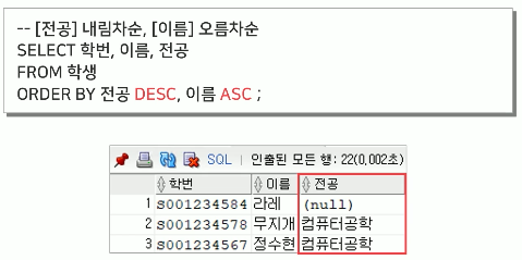 출력 시 정렬 기준 설정, SQL 문장의 맨 마지막에 위치
