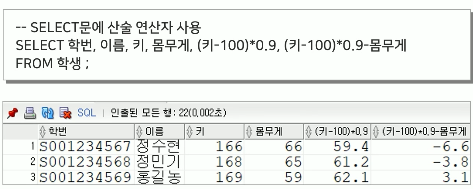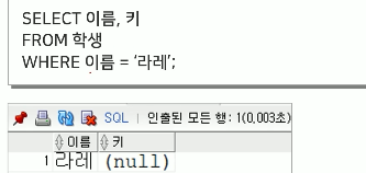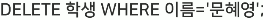 - UPDATE 학생 SET 몸무게=999 WHERE 이름='라레';