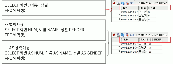 칼럼명과 별칭 사이에 AS 키워드를 사용(Optional)