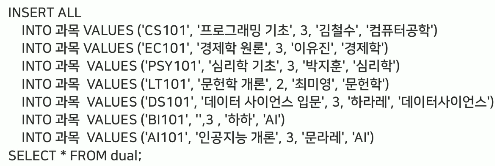 INSERT ALL은 반드시 SELECT문을 사용해야 함